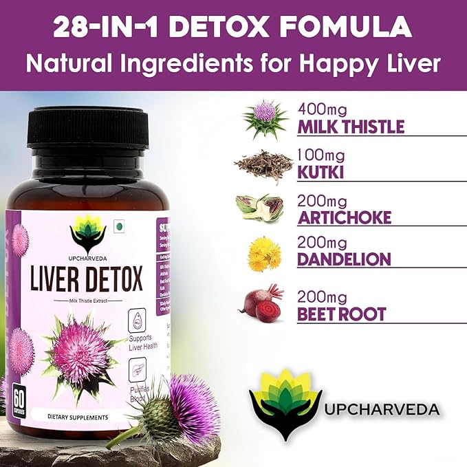 Buy UpcharVeda Liver Detox – Ayurvedic liver detox and repair formula made with Milk Thistle Extract. Supports liver health, purifies blood, and improves digestion. 100% herbal and safe.